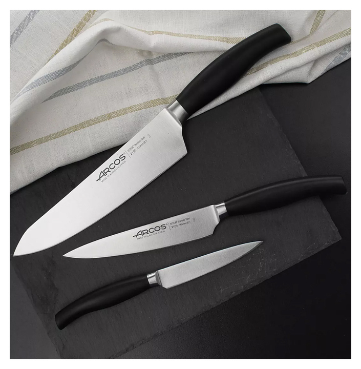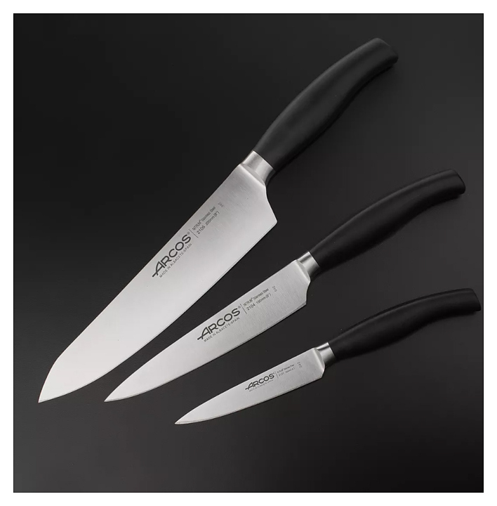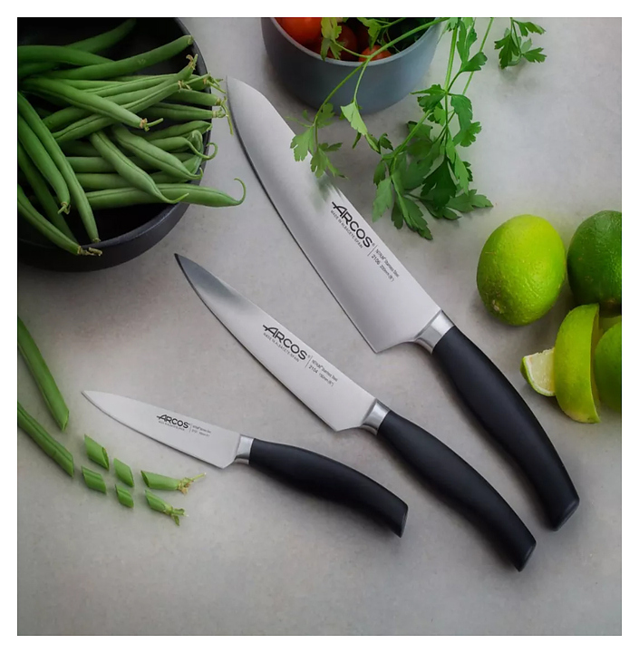 Испанская компания Arcos производит ножи для оснащения кухонь предприятий общественного питания и торговли, частных домов и квартир. Выпускаемые изделия оснащены эргономичной ручкой из полипропилена, устойчивого к ударам и перепадам температур, и лезвием, выполненным из эксклюзивной нержавеющей стали NITRUM, отличающейся повышенной прочностью. |