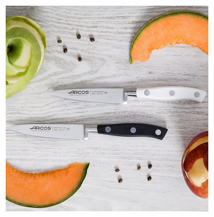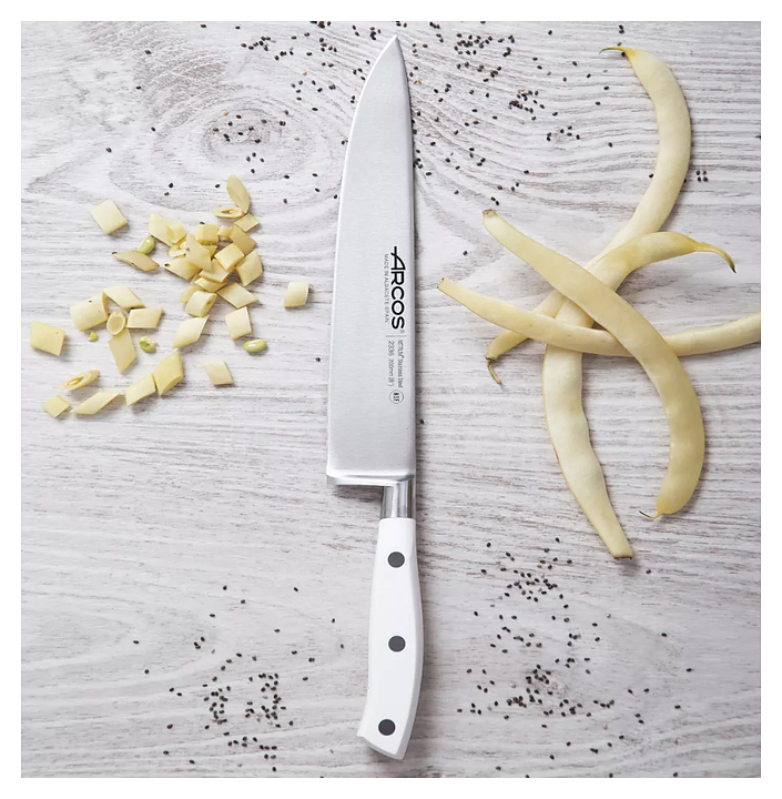 Испанская компания Arcos производит ножи для оснащения кухонь предприятий общественного питания и торговли, частных домов и квартир. Выпускаемые изделия оснащены эргономичной ручкой из полипропилена, устойчивого к ударам и перепадам температур, и лезвием, выполненным из эксклюзивной нержавеющей стали NITRUM, отличающейся повышенной прочностью. |