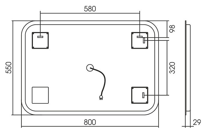 Зеркало Art&Max Siena S AM-SieS-550-800-DS-F выполнено в современном стиле и отлично дополнит интерьер любой ванной комнаты. Благодаря подвесной конструкции модель не занимает много места, что позволяет экономить пространство в ванной комнате. Зеркало оснащено внутренней светодиодной подсветкой и бесконтактным сенсорным выключателем с функцией диммера. Питание светильника осуществляется от сети через блок питания постоянного напряжения. Изделие выполнено из стекла высшего качества M0, которое отличается влагостойкостью и минимальными оптическими искажениями. В комплект поставки входит крепеж. Особенности: