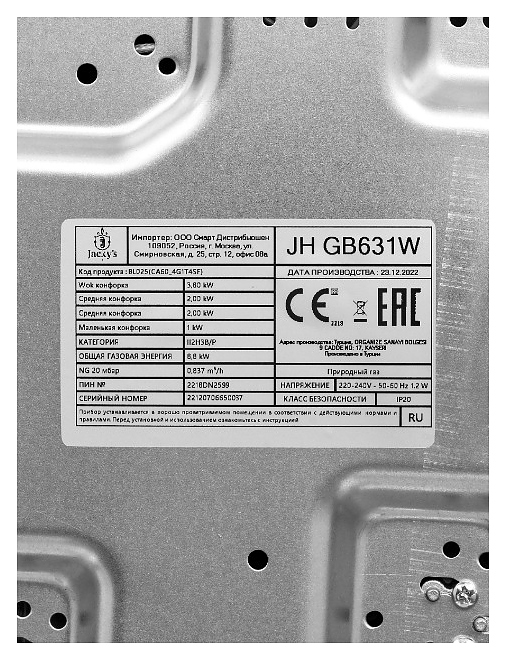 Варочная панель газовая Jacky's JH GB631W черное стекло