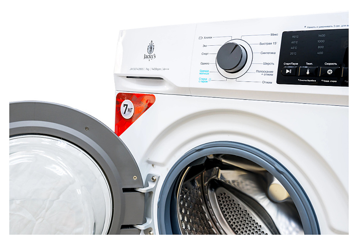 Стиральная машина Jacky's JW S0742BBS используется в домашних условиях, а также небольших прачечных для стирки, полоскания и отжима белья, одежды и тканей. Модель оснащена фронтальным люком со смотровым окном, съемным контейнером для моющих средств с 3 отсеками, сливным шлангом, кабелем питания с вилкой, электромеханической панелью управления с поворотным переключателем программ, функциональными кнопками, сигнальными лампами и светодиодным цифровым дисплеем. Корпус выполнен из металла с антикоррозийным покрытием белого цвета, внешняя дверь люка – из стекла с окантовкой черного цвета, барабан – из высококачественной нержавеющей стали. В комплект поставки входят шланг для подачи воды, гаечный ключ, набор заглушек и инструкция по эксплуатации. Особенности: