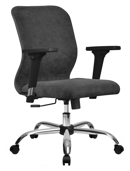 Кресло Метта Комплект SU-Mr-4/подл.200/осн.003 предназначено для долгой работы за компьютером на даче, дома, а также в офисах. Модель оснащена низкой, замкнутой сверху, спинкой, регулируемыми подлокотниками, комфортным объемным сиденьем, пятилучьем с овальным сечением и роликами. Каркас выполнен из стали с износостойким черным полимерным покрытием, газлифт и пятилучье - из хромированной стали, полики - из полиамида, обивка - из износостойкого велюра Vivaldi. Особенности:
