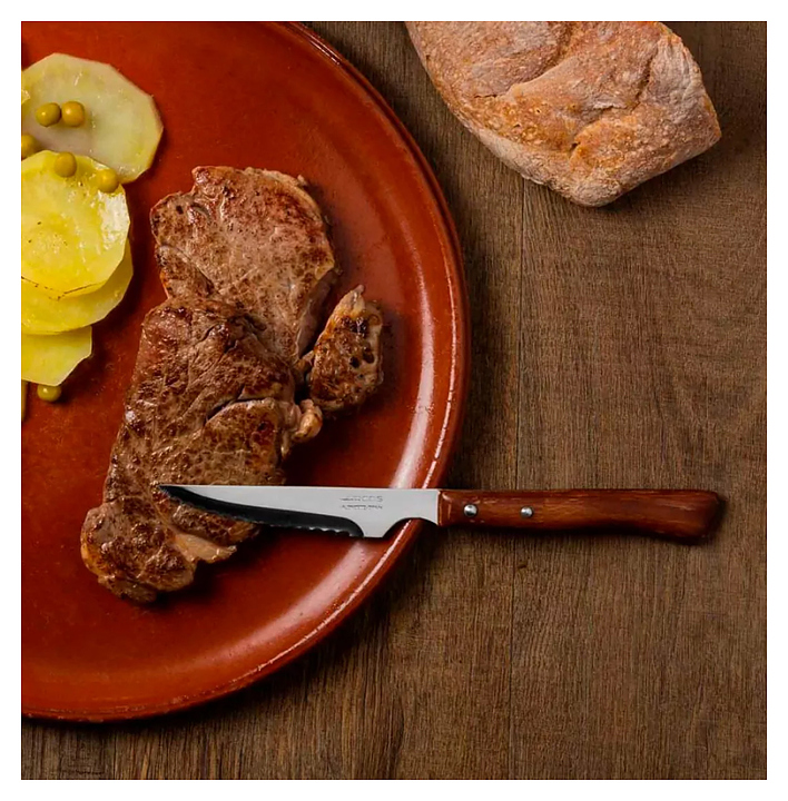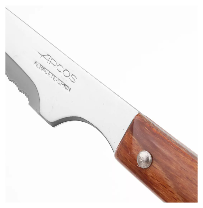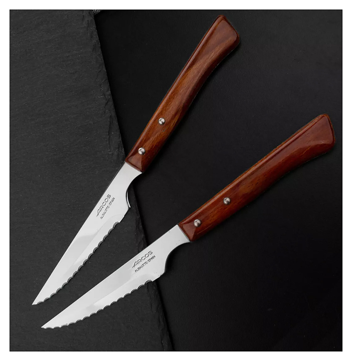 Набор столовых ножей для стейка Arcos Steak Knives 377600 используется на предприятиях общественного питания и торговли, а также в частных домах и квартирах. Лезвия выполнены из высококачественной нержавеющей стали NITRUM с зеркальной полировкой, эргономичные рукоятки - из пресованного дерева. Особенности: