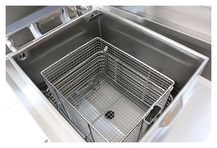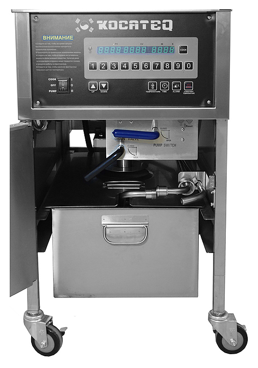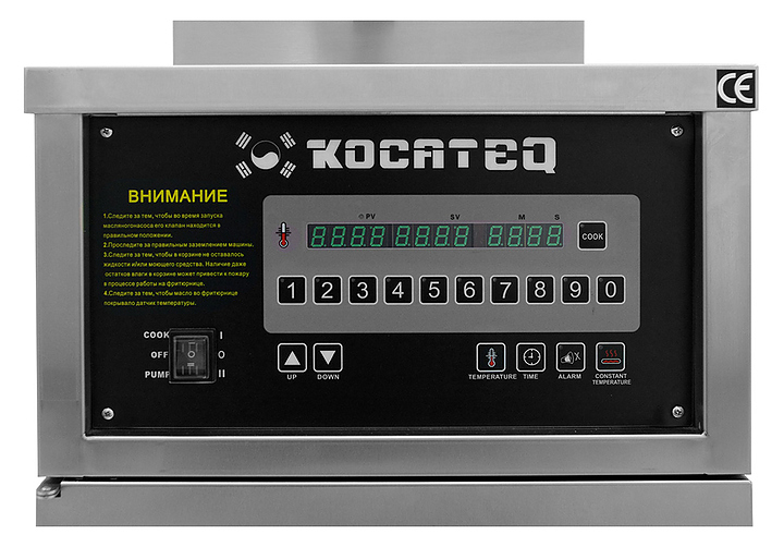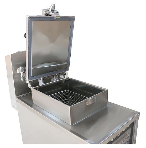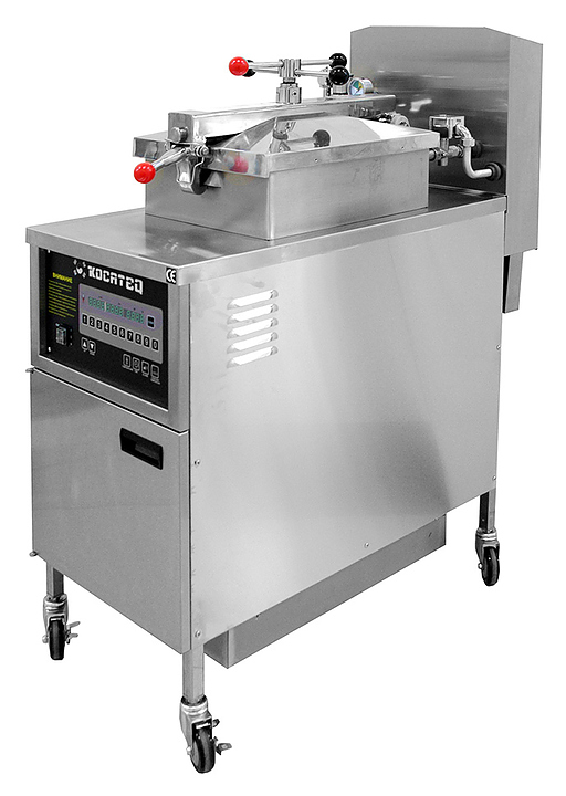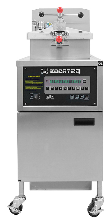 Фритюрница Kocateq PFE600 под давлением предназначена для приготовления различных продуктов в большом количестве масла или жира на предприятиях общественного питания и торговли. Модель оснащена цифровой панелью управления, термостатом для регулировки температуры, цифровым таймером до 90 минут и защитным термостатом, автоматически отключающим напряжение при повреждении основного термостата. Все части, соприкасающиеся с продуктами, выполнены из нержавеющей стали AISI 304, крышка - из анодированного сплава алюминия. В комплект поставки входит прямоугольная корзина со съемной ручкой. Особенности: