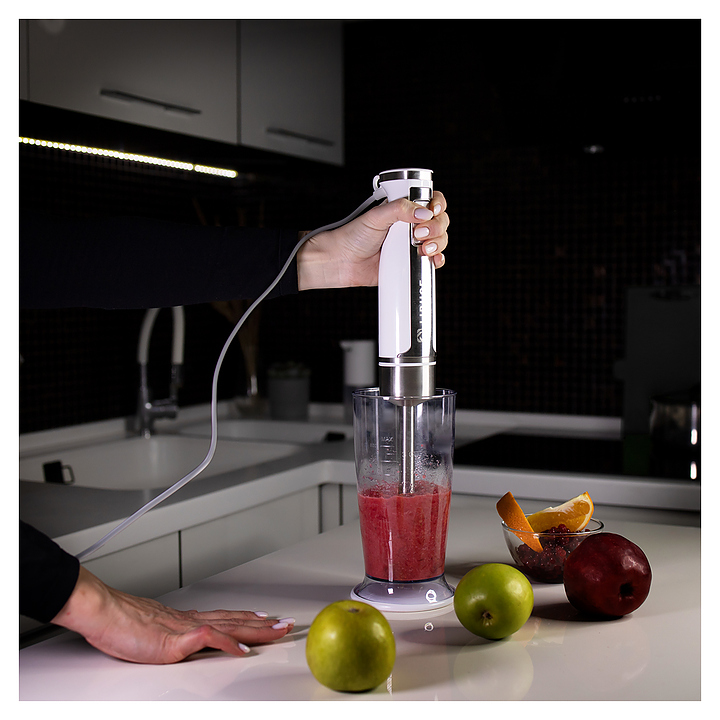 Погружной блендер Libhof BK-200 предназначен для приготовления овощных пюре, смузи, зеленых коктейлей, муссов и кремов в частных домах и квартирах. Модель оснащена электронной панелью управления. Корпус кувшина выполнен из пластика, погружная часть - из металла, ножи - из высококачественной нержавеющей стали. Комплектация: