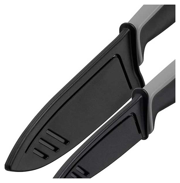 Набор кухонных ножей WMF Touch 18.7908.6100 предназначен для нарезки различных продуктов на предприятиях общественного питания и торговли, в частных домах и квартирах. Эргономичная ручка и идеально сбалансированный вес лезвия и ручки гарантируют комфорт во время эксплуатации. Закаленное лезвие с антипригарным покрытием обеспечивает длительную остроту. Изделие можно мыть только вручную. Ручка выполнена из высококачественного пластика, лезвие - из нержавеющей стали, которая отличается прочностью и долговечностью, не впитывает запахи и грязь. В комплект поставки входят универсальный нож длиной 9 см, поварской нож длиной 13 см и 2 чехла для ножей. Дополнительные характеристики: