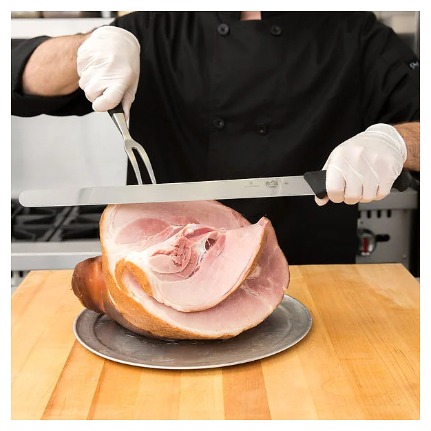 Нож Victorinox 5.4203.36 Fibrox используется для нарезания тонкими ломтиками запеченных мяса, птицы, мясных полуфабрикатов и аналогичных продуктов на предприятиях общественного питания и в домашних условиях. Модель оснащена лезвием с прямой режущей кромкой и округлым наконечником. Клинок выполнен из высококачественной мартенситной нержавеющей стали с полированной поверхностью, рукоятка – из комбинированного полимера фиброкс: твердая внутренняя часть – из полипропилена (PP), внешняя – из термопластичного эластомера (TPE) черного цвета. Особенности:
