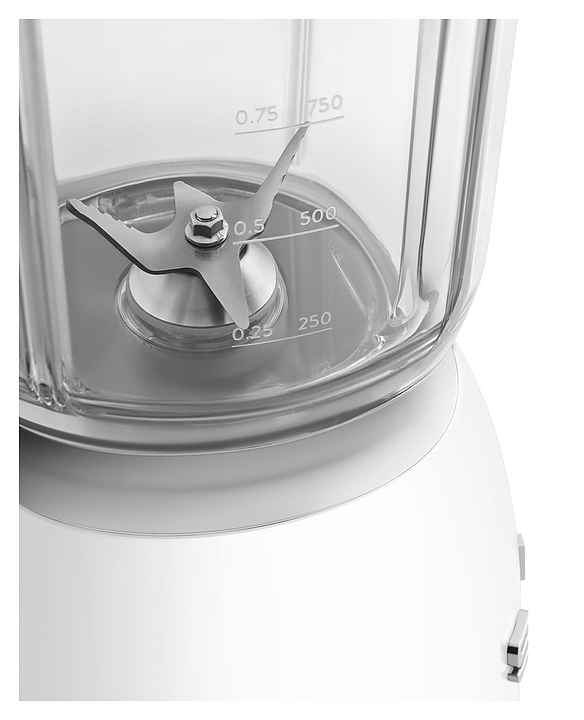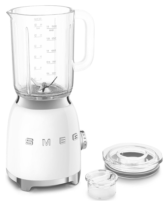 Стационарный блендер SMEG BLF03WHEU предназначен для измельчения пищевых продуктов и приготовления муссов, смузи, фраппе, соусов, коктейлей, фруктовых и овощных пюре в домашних условиях. Модель оснащена кабелем питания с вилкой и электромеханической панелью управления. Корпус выполнен из нержавеющей стали с глянцевым покрытием белого цвета и накладными объемными серебристыми литерами логотипа, основание, манжета и переключатель – из пластика с покрытием оттенка полированный хром, кувшин и крышки – из высокопрочного полимера Tritan Renew без содержания вредных компонентов, ножи – из высококачественной нержавеющей стали. Комплектация: