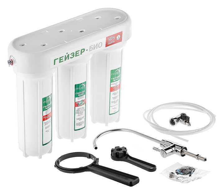 Фильтр ГЕЙЗЕР Био 321 предназначен для доочистки водопроводной воды от примесей, таких как железо, бактерии, хлорорганические и органические примеси, хлор, тяжелые металлы и механические частицы. Модель выполнена из пищевого пластика, допущенного к контакту с питьевой водой. Этапы очистки воды: