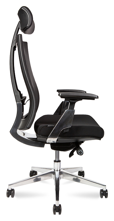 Кресло NORDEN Vogue aluminium CH-203A-B-BB предназначено для меблировки кабинета руководителя. Модель оснащена механизмом мульти блок с фиксацией в 4 положениях и регулировкой жесткости качания. Каркас подлокотников выполнен из алюминия, каркас спинки - из нейлона и армированной сетки, сиденье из ткани, каркас - из пластика, подголовник - из экокожи, накладки - из полиуретана, база - из алюминия. Особенности: