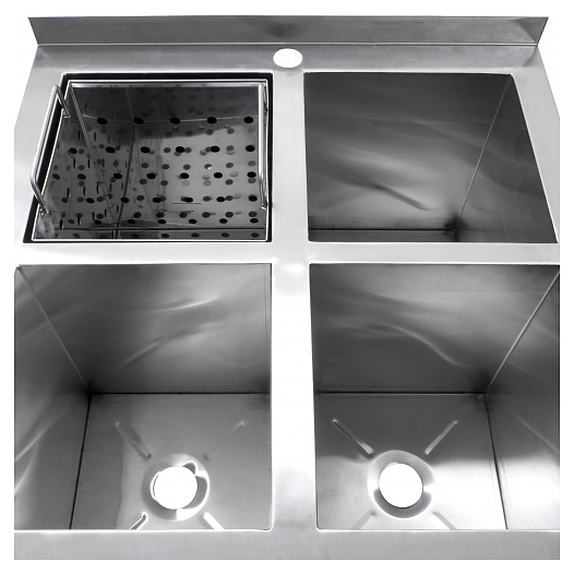 Моечная ванна ПищТех ВМОя-6/6-М предназначена для санитарной обработки яиц на предприятиях общественного питания и торговли. Модель оснащена 4 независимыми емкостями и ножками с регуляторами высоты. Сварной каркас выполнен из нержавеющей трубы 40x40 мм, ванны и корзина - из нержавеющей стали AISI 430 толщиной 0,8 мм. В комплект поставки входит 1 перфорированная корзина для яиц. Сифоны в комплект поставки не входят и приобретаются отдельно. Особенности: