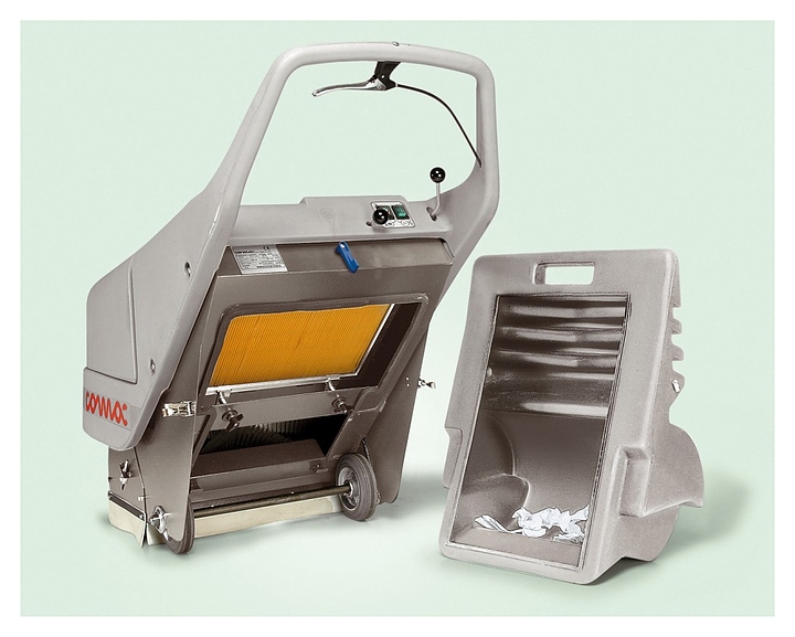 Подметальная машина Comac CS50 HT предназначена для технической уборки складов, служебных зон, автомоек и помещений общественного назначения, логистических сооружений, ремесленных мастерских и предприятий автобизнеса. Модель оснащена бензиновым двигателем и съемным мусорным баком. Покрытие рукоятки выполнено из пластика. Особенности: