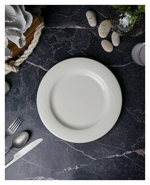 Тарелка Porland 185927 серии Storm предназначена для профессионального использования на предприятиях общественного питания. Декор изделия отличается уникальным дизайном с плавными волнообраными линиями. Посуда изготавливается по запатентованной технологии Alumilite с добавлением оксида алюминия, что делает ее устойчивой к сколам, механическим и термическим воздействиям. Изделие выполнено из твердого фарфора и покрыто высококачественной тугоплавкой глазурью Feldspatic. Цена указана за 1 шт. Особенности: