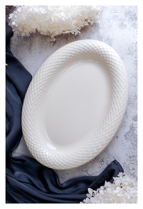Овальное блюдо Porland 11BB34 серии Aqua Alumilite предназначено для профессионального использования на предприятиях общественного питания. Декор изделия отражает простоту и лаконичность и отличается рельефным узором. Посуда изготавливается по запатентованной технологии Alumilite с добавлением оксида алюминия, что делает ее устойчивой к сколам, механическим и термическим воздействиям. Изделие выполнено из твердого фарфора и покрыто высококачественной тугоплавкой глазурью Feldspatic. Особенности: