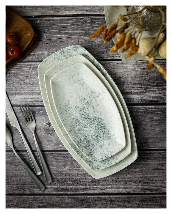 Прямоугольная тарелка Porland 114423 серии Smoky предназначена для профессионального использования на предприятиях общественного питания. Декор изделия имеет дымчатый эффект серо-синего напыления, особую рельефную структуру поверхности и создает эффект легкости и невесомости. Посуда изготавливается по запатентованной технологии Alumilite с добавлением оксида алюминия, что делает ее устойчивой к сколам, механическим и термическим воздействиям. Изделие выполнено из твердого фарфора и покрыто высококачественной тугоплавкой глазурью Feldspatic. Цена указана за 1 шт. Особенности:
