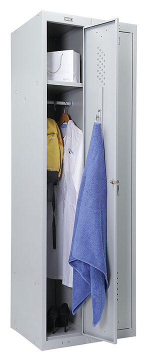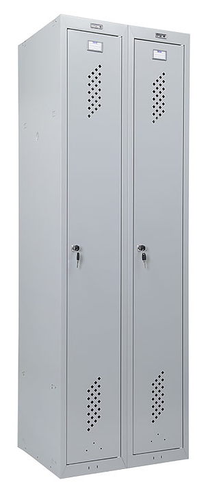 Шкаф для одежды ПРОМЕТ Практик Усиленный ML-21-60 используется на предприятиях общественного питания и торговли, а также в производственных помещениях для хранения одежды и личных вещей персонала. Модель имеет 2 секции, каждая из которых оснащена запираемой на ключ распашной дверцей, полкой, перекладиной и крючками. Корпус выполнен из стали, окрашенной методом порошкового напыления. Особенности: