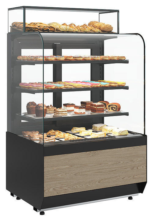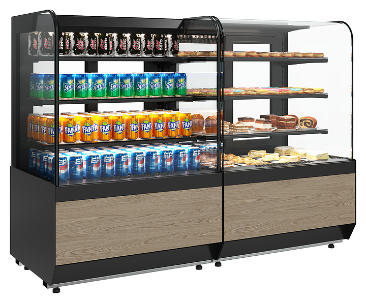 Нейтральная витрина Carboma KR70 N 1,3-1 Light используется в составе линии раздачи на предприятиях общественного питания и торговли для демонстрации и кратковременного хранения продуктов питания, готовых блюд и напитков, не требующих особого температурного режима хранения. Модель оснащена гнутым фронтальным стеклом и боковыми прямыми стеклами без металлических рамок, обеспечивающими улучшенный обзор продукции, и задними створками-слайдерами со встроенной ручкой. Особенности:
