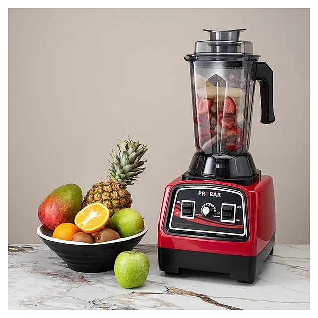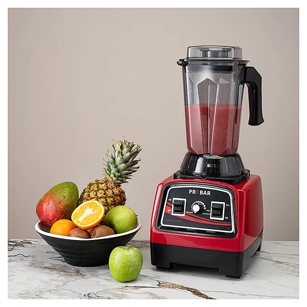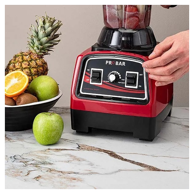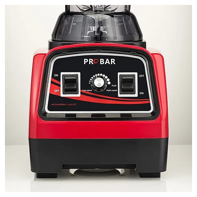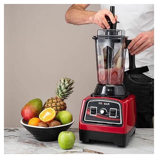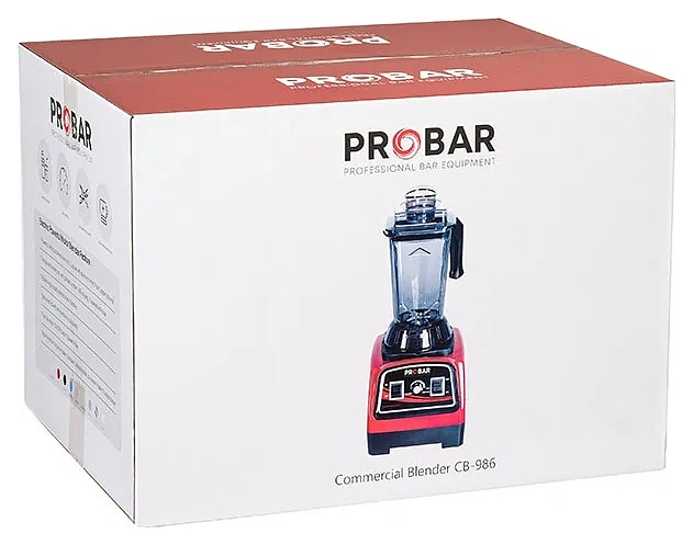 Стационарный блендер Probar CB-986 предназначен для измельчения пищевых продуктов и приготовления муссов, смузи, фраппе, соусов, коктейлей, фруктовых и овощных пюре на предприятиях общественного питания и торговли. Модель оснащена электромеханической панелью управления. Корпус выполнен из пластика в комбинации красного и черного цветов, кувшин, загрузочная горловина и мерная крышка – из прочного прозрачного полимера, ножи – из нержавеющей стали. Комплектация: