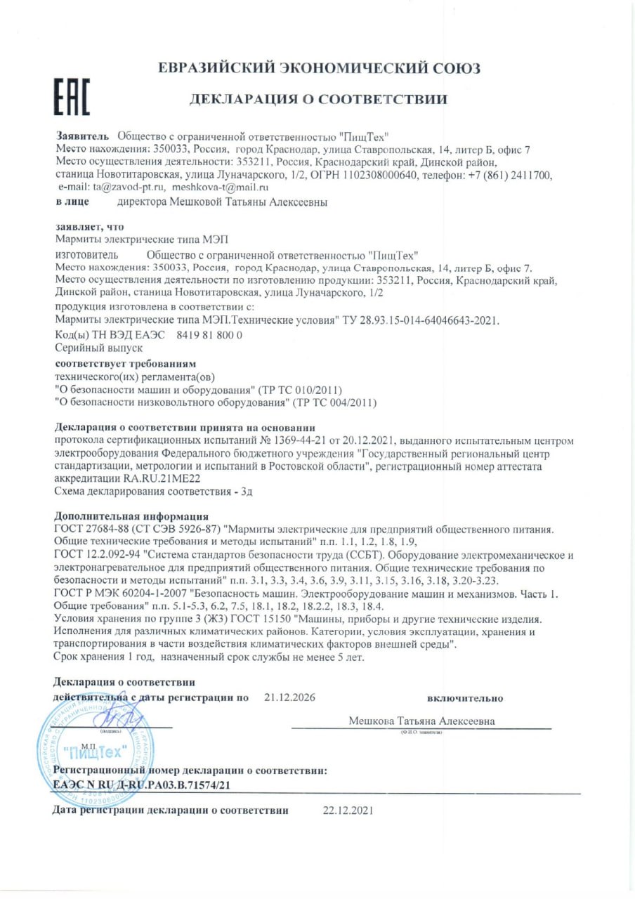 Мармит вторых блюд ПищТех Лира-Профи МЭП-2БП/ЛП-01