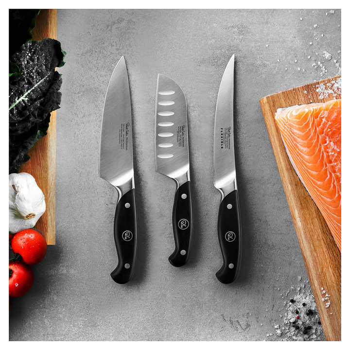 Поварской нож ROBERT WELCH Professional RWPSA2029V предназначен для шинковки овощей и нарезки мяса. Рукоятка изготовлена из искусственного композитного материала DuPont с высокими влаго- и износоустойчивостью и не вступает в реакции с пищевыми продуктами. Клинок выполнен из кованой молибден-ванадиевая стали X50CrMoV15, которая отличается высоким уровнем прочности, твердости и не подвержена окислению. Лезвие долгое время не нуждается в дополнительной заточке и сохраняет свой первозданный вид на протяжении всего срока использования. Особенности: