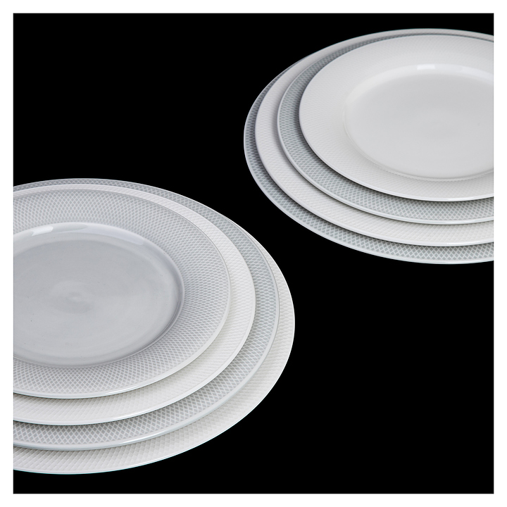 Мелкая тарелка Corone Rosenthal LG033 используется для подачи вторых блюд в ресторанах, кафе, на других предприятиях общественного питания и в домашних условиях. Модель круглой формы оснащена широким бортом с декоративным рельефом. Изделие выполнено из высококачественного белого фарфора с теплым оттенком айвори. Особенности: