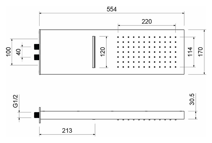 Верхний душ Aquatek 2 jet AQ2085MB предназначен для использования в ванных комнатах. Модель имеет душевую головку прямоугольной формы. Система против известковых отложений гарантирует простой уход. Изделие выполнено из нержавещей стали. Особенности: