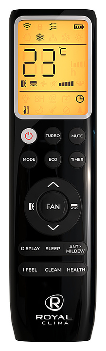 Настенная сплит-система ROYAL Clima RCI-RSN55HNсерии ROYAL SUPREMO NERO Full DC EU Inverter используется для создания максимально кофмортных условий микроклимата в жилых, офисных и коммерческих помещениях. Модель состоит из внутреннего блока RCI-RSN55HN/IN и наружного блока RCI-RSN55HN/OUT. Наружный блок оснащен 3-лопастным вентилятором, защитными решеткой и крышкой для сервисных вентилей, внутренний блок – воздухозаборной решеткой, откидной лицевой панелью, подвижными горизонтальными и вертикальными жалюзи, электронным блоком управления и светодиодным дисплеем скрытого типа с проецируемой на фронтальную панель индикацией, пульт – информативным жидкокристаллическим дисплеем с яркой оранжевой подсветкой и кнопочной клавиатурой. Облицовка внутреннего блока выполнена из пластика с поверхностью черного цвета и декоративными фронтальными и боковыми вставками серебристого оттенка, корпус пульта – из ударопрочного черного пластика.