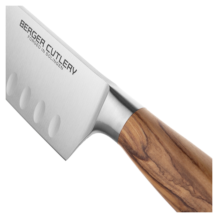 Кухонный нож Сантоку BERGER CUTLERY Ergo Line Olive BC100916 предназначен для использования на предприятиях общественного питания и торговли, а также в частных домах и квартирах. Лезвие выполнено из высококачественной кованой молибден-ванадиевой стали X50CrMoV15, рукоять - из оливкового дерева. Особенности: