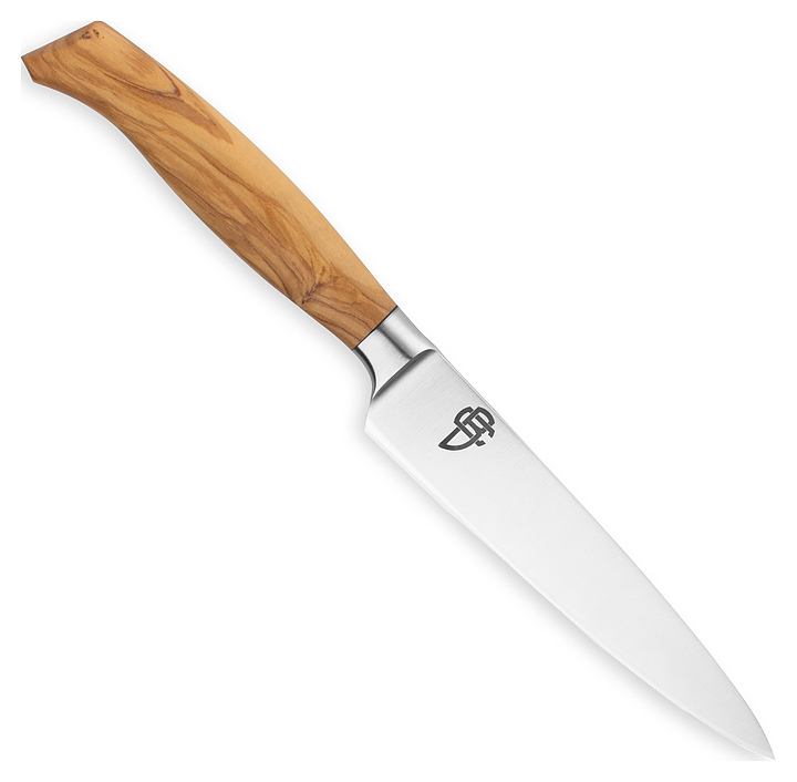 Универсальный нож BERGER CUTLERY Ergo Line Olive BC101216 предназначен для использования на предприятиях общественного питания и торговли, а также в частных домах и квартирах. Лезвие выполнено из высококачественной кованой молибден-ванадиевой стали X50CrMoV15, рукоять - из оливкового дерева. Особенности: