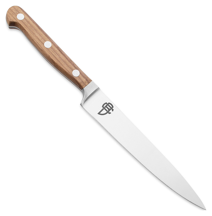 Универсальный нож BERGER CUTLERY Classic Walnut BC201216 используется на предприятиях общественного питания и торговли, в частных домах и квартирах для нарезки овощей, зелени, мяса, рыбы, птицы и других продуктов. Лезвие выполнено из высококачественной кованой молибден-ванадиевой стали X50CrMoV15, рукоять - из орехового дерева. Особенности: