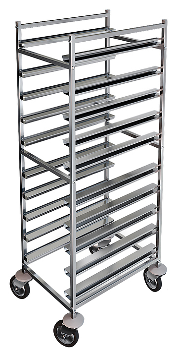 Тележка-шпилька Техно-ТТ СТР-330/806У предназначен для транспортировки и хранения противней на предприятиях общественного питания и торговли. Модель оснащена 4 поворотными колесами, 2 из которых с тормозными устройствами и отбойниками. Каркас выполнен из квадратной трубы 20х20 мм из нержавеющей стали AISI 304, полозки - из нержавеющей стали AISI 430 толщиной 1,0 мм, отбойники - из пластика, колеса покрыты резиной. Внимание! Шпилька поставляется в разобранном виде. Дополнительные характеристики: