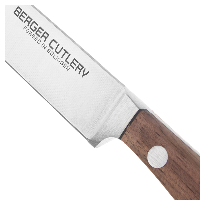 Нож BERGER CUTLERY Classic Walnut BC201312 предназначен для нарезки и чистки овощей, зелени, мяса, рыбы, птицы и других продуктов на предприятиях общественного питания и торговли, в частных домах и квартирах. Лезвие выполнено из высококачественной кованой молибден-ванадиевой стали X50CrMoV15, рукоять - из орехового дерева. Особенности: