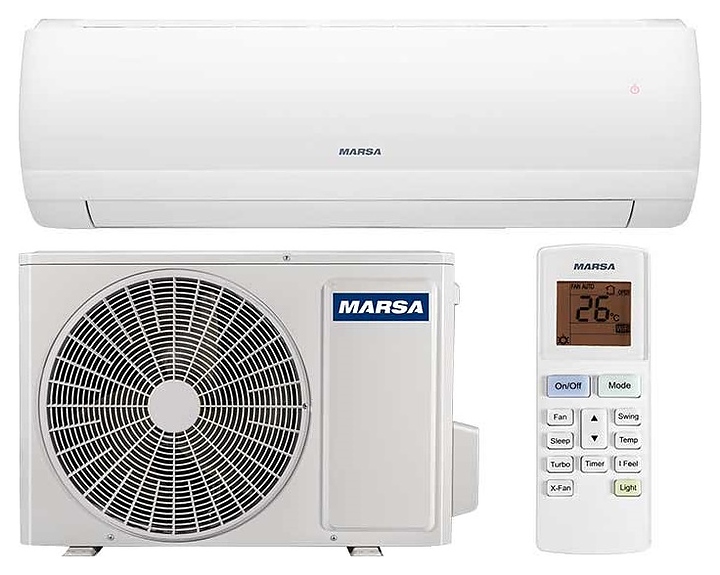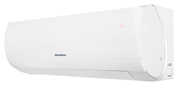 Настенная сплит-система MARSA MRK-24MGF / MRK-24MGFE серии FORTUNA используется для создания максимально кофмортных условий микроклимата в жилых, офисных и коммерческих помещениях. Модель состоит из внутреннего блока MRK-24MGF и наружного блока MRK-24MGFE. Наружный блок оснащен 3-лопастным вентилятором, защитными решеткой и крышкой для сервисных вентилей, внутренний блок – воздухозаборной решеткой, откидной лицевой панелью, подвижными горизонтальной заслонкой и вертикальными жалюзи, электронным блоком управления и светодиодным дисплеем, пульт – информативным жидкокристаллическим дисплеем с оранжевой подсветкой и кнопочной клавиатурой. Облицовка внутреннего блока выполнена из пластика с поверхностью белого цвета с декоративными боковыми вставками серебристого оттенка, корпус пульта – из ударопрочного белого пластика, корпус наружного блока с антикоррозийным покрытием.