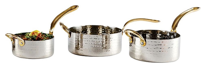 Сотейник для подачи P.L. Proff Cuisine SMS02 Dents d=12 см h=5,8 см (нерж. сталь) с 2 ручками золото