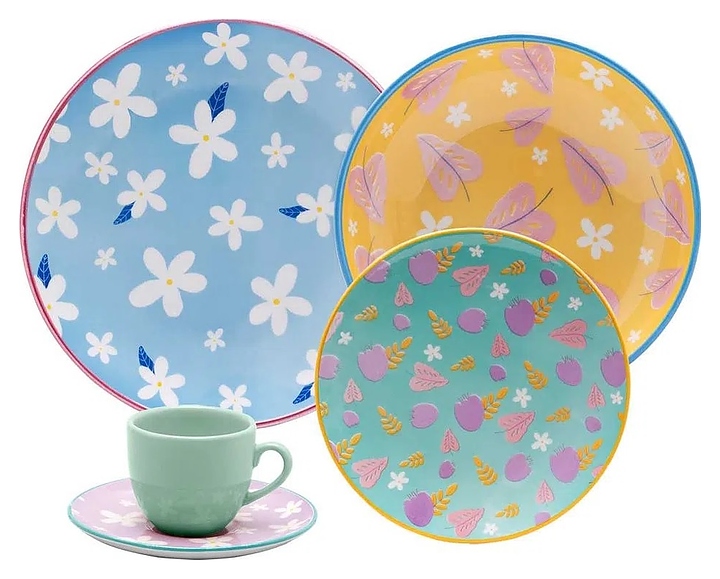 Чайная пара Oxford COUP Shape COLORE 126863 ED02-4689 используется на предприятиях общественного питания и торговли, а также в домашних условиях для подачи чая. Коллекция вдохновленная тенденцией сочетания различных элементов в моде Mix&Match, декорирована паттернами из цветов и листьев в насыщенной цветовой гамме. Модель состоит из круглого блюдца и чашки с плавно расширенным бортом и дугообразной рукояткой. Изделия выполнены из высококачественного фарфора с глянцевой глазурованной поверхностью, чашка светло-зеленого оттенка, блюдце в сиреневых тонах с голубым кантом по кромке. Цена указана за 1 шт. Особенности: