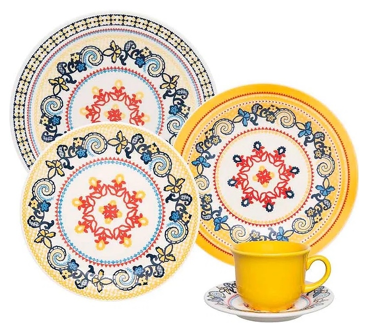 Чайная пара Oxford FLOREAL Shape LA POLLERA 75365 J071-6810 используется на предприятиях общественного питания и торговли, а также в домашних условиях для подачи чая. Коллекция вдохновлена эстетикой испанских колониальных платьев и декорирована узорными орнаментами в яркой контрастной цветовой гамме. Модель состоит из круглого блюдца и чашки с плавно расширенным выгнутым у кромки бортом и дугообразной рукояткой. Изделия выполнены из высококачественной керамики с глянцевой глазурованной поверхностью, чашка желтого цвета. Цена указана за 1 шт. Особенности: