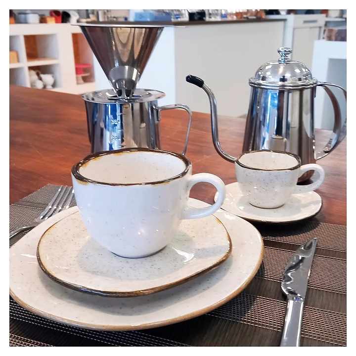 Кофейная пара Oxford RYO MARESIA 103227 RB05-9515 используется на предприятиях общественного питания и торговли, а также в домашних условиях для подачи кофе. Коллекция отличается вдохновленным красотой морских пляжей декором. Модель состоит из блюдца и чашки с плавно расширенным бортом и дугообразной рукояткой. Изделия выполнены из высококачественного белого фарфора с глянцевой глазурованной рельефной поверхностью, паттернами в виде мелких крапин и кантами на кромках в коричневых тонах. Цена указана за 1 шт. Особенности: