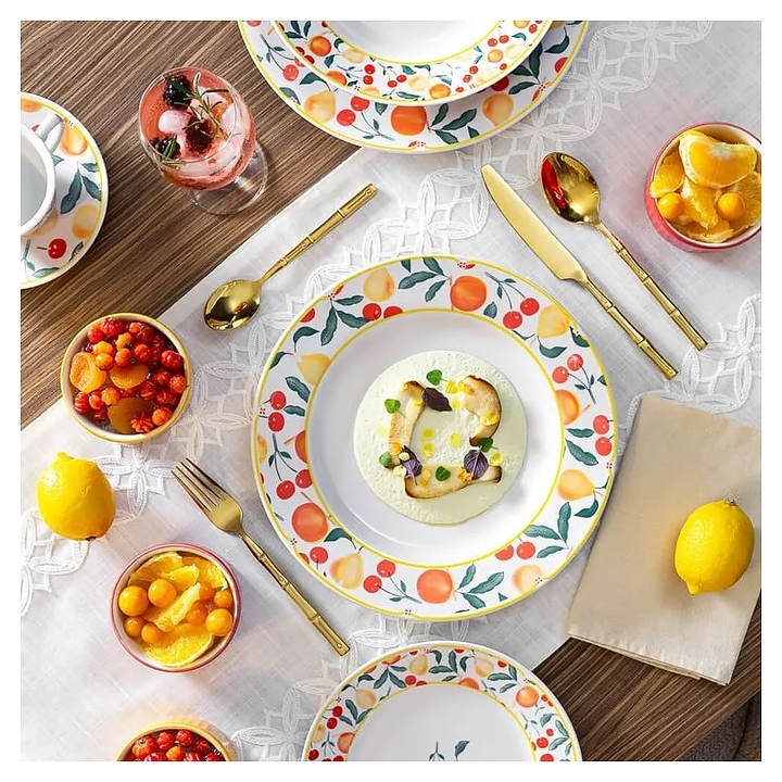 Глубокая тарелка Oxford FLAMINGO FRUITS 90520 SB02-9410 используется на предприятиях общественного питания и торговли, а также в домашних условиях для подачи первых блюд. Коллекция с элегантными функциональными формами декорирована фруктовыми паттернами в ярких тонах на белом фоне. Изделие выполнено из высококачественного фарфора с глянцевой глазурованной поверхностью. Цена указана за 1 шт. Особенности: