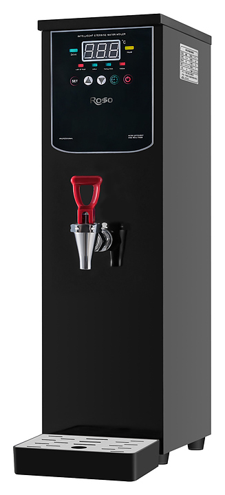 Проточный кипятильник Rosso HWB-10L предназначен для быстрого нагрева воды и поддержания ее температуры в течение длительного времени на предприятиях общественного питания и торговли. Модель оснащена электродами, посылающими сигнал на микрокомпьютер, который активирует нагревательный элемент и электромагнитный клапан, регулируя температуру и объем подачи воды. Корпус выполнен из нержавеющей стали. Особенности: