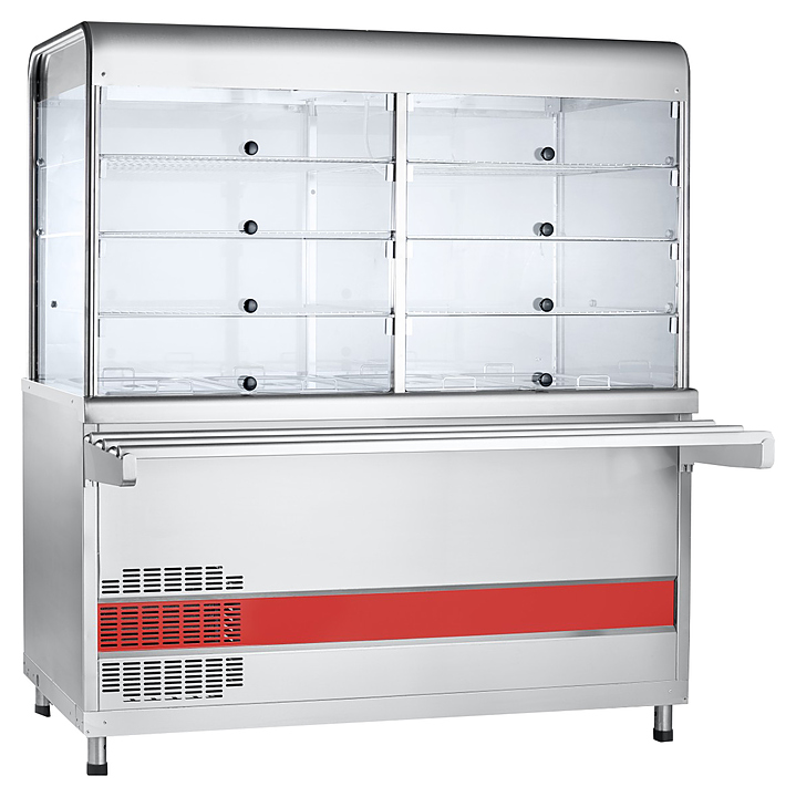 Прилавок-витрина Abat ПВВ(Н)-70КМ-С-03-НШ используется в составе линии раздачи Аста для демонстрации, охлаждения, кратковременного хранения блюд, холодных закусок и напитков на предприятиях общественного питания и торговли. Модель оснащена регулируемыми по высоте ножками. Конструкция выполнена из нержавеющей стали. Особенности: