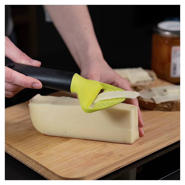 Нож Trebonn Kitchen Tools 1523214 используется на предприятиях общественного питания и в домашних условиях для нарезки тонкими кусочками сыров твердых сортов. Модель оснащена ручкой с отверстием для подвешивания. Нож можно мыть в посудомоечной машине. Изделие выполнено из полипропилена. Дополнительные характеристики: