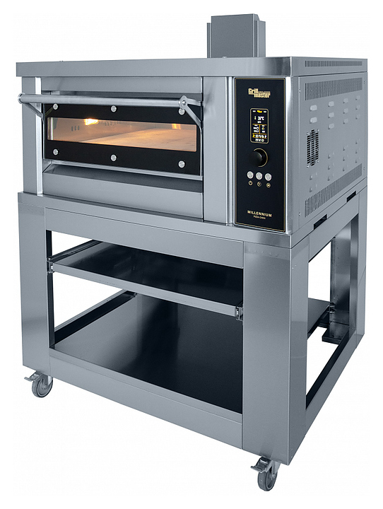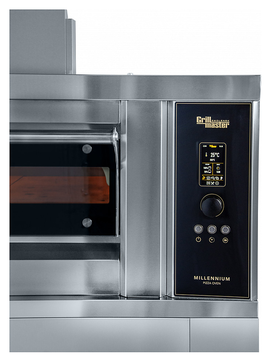 Печь Grill Master ППГ/1 используется на предприятиях общественного питания и торговли для приготовления пиццы. Модель оснащена электронной панелью с джойстиком, 4-мя газовыми горелками с системой электронного поджига и контроля пламени. Корпус, включая внешние и внутренние панели, выполнен из нержавеющей стали, под - из вулканического камня толщиной 20 мм, занимающего всю внутреннюю площадь печи, дверца - из закаленного ударопрочного стекла. Подставка в комплект поставки не входит. Особенности: