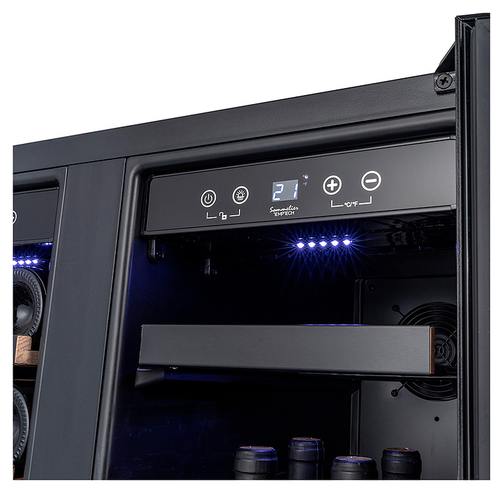 Винный шкаф Temptech Sommelier SOM2D60DRB предназначен для охлаждения, хранения и демонстрации бутилированного вина в отелях, винных магазинах, на предприятиях общественного питания и торговли. Модель оснащена 2 камерами, внутренней светодиодной подсветкой, сенсорной панелью, цифровым дисплеем и вентиляторами для циркуляции воздуха. Дверца выполнена из тройного стекла с УФ-фильтром. Особенности: