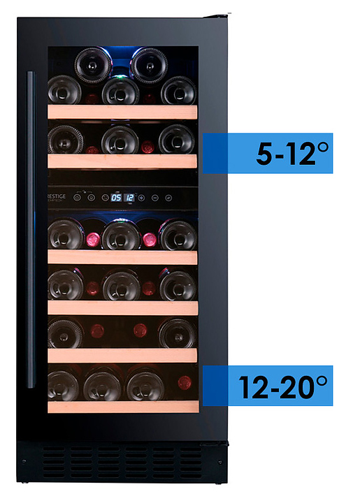Винный шкаф Temptech Prestige PRESX30SB-24 предназначен для охлаждения, хранения и демонстрации бутилированного вина в отелях, винных магазинах, на предприятиях общественного питания и торговли. Модель оснащена 2 температурными зонами, внутренней светодиодной подсветкой, сенсорной панелью и цифровым дисплеем. Дверца выполнена из тройного стекла с УФ-фильтром, полки - из дерева. Особенности: