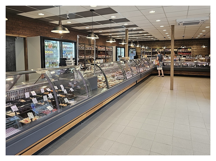 Холодильная витрина Lida Midi-1 U (2410х1220х1250 мм) используется на предприятиях общественного питания и торговли для кратковременного хранения и предпродажной демонстрации охлажденного мяса, полуфабрикатов и другой продукции. Модель оснащена подставкой с фронтальной термовыводящей решеткой и внешней полкой со стороны продавца. Наружные и внутренние поверхности выполнены из нержавеющей и оцинкованной стали с антикоррозийным покрытием порошковой эмалью, внешняя полка, экспозиционная поверхность и ТЭНы оттайки – из нержавеющей стали, испаритель – из медных трубок, ночные шторки – из оргстекла. Комплектация: