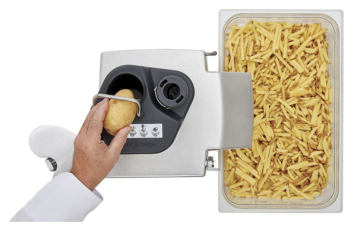 Насадка Robot Coupe Easy Loader + Fri 6x6 мм используется совместно с кухонным процессором R 502, а также овощерезками CL50 для нарезки брусочков картофеля фри. В комплект поставки входит устройство EasyLoader и диск. Характеристики: