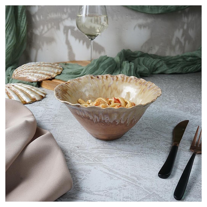 Салатник P.L. Proff Cuisine Pearl Coral Flower Frutti di Mare QB23171006 используется в барах, ресторанах, на других предприятиях общественного питания и в домашних условиях для подачи салатов. Коллекция отличается стильным биофильным дизайном. Емкость круглой формы оснащена расширенным кверху бортом с декоративным рельефом и волнистой кромкой. Изделие выполнено из высококачественной керамики в гармоничном сочетании бежевого и коричневого оттенков. Цена указана за 1 шт. Информация о товарах, размещенная на сайте, не является публичной офертой, определяемой положениями ст. 405 Гражданского кодекса Республики Беларусь. Производители вправе вносить изменения в технические характеристики, внешний вид и комплектацию товаров без предварительного уведомления. Уточняйте характеристики у наших менеджеров перед оформлением заказа |