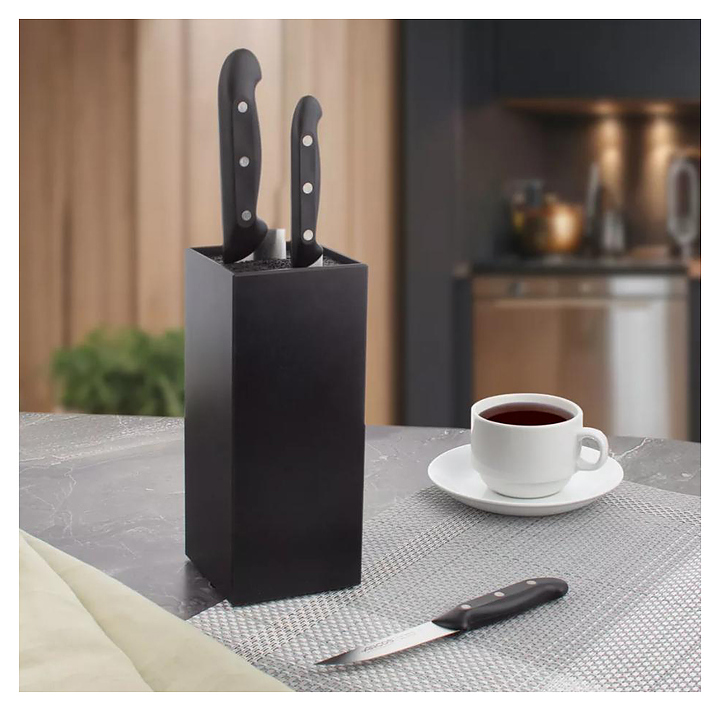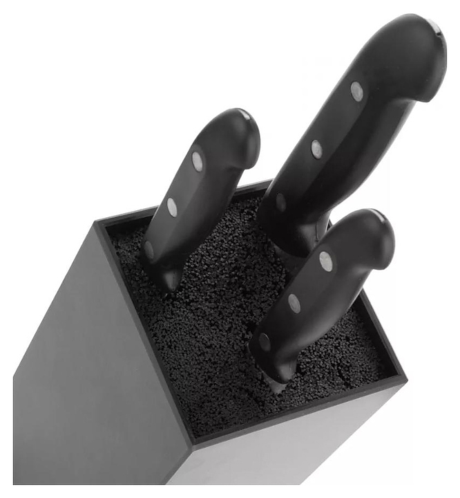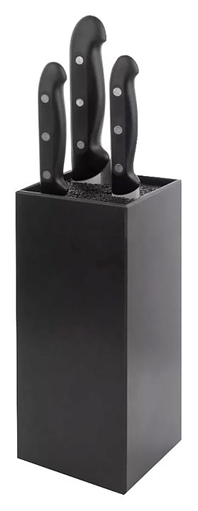 Набор ножей Arcos Maitre AR151015 предназначен для нарезки и разделки различных продуктов на предприятиях общественного питания и торговли. Рукоятки изготовлены из полипропилена, отличающегося устойчивостью к воздействию влаги, слабых щелочных и кислотных растворов, высокой температуры и коррозии, долгое время сохраняют свою целостность и внешний вид. Клинки выполнены из стального сплава NITRUM, устойчивого к коррозии и долговечного, длительно сохраняющего остроту режущей кромки и первоначальный внешний вид во время всего периода эксплуатации. Подставка изготовлена из бумажно-слоистого композитного материала. Комплектация: