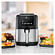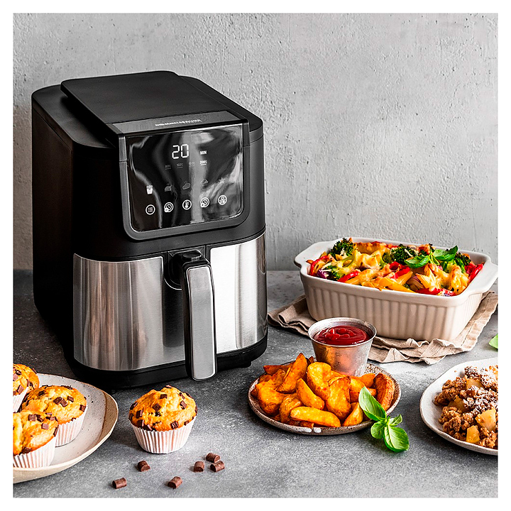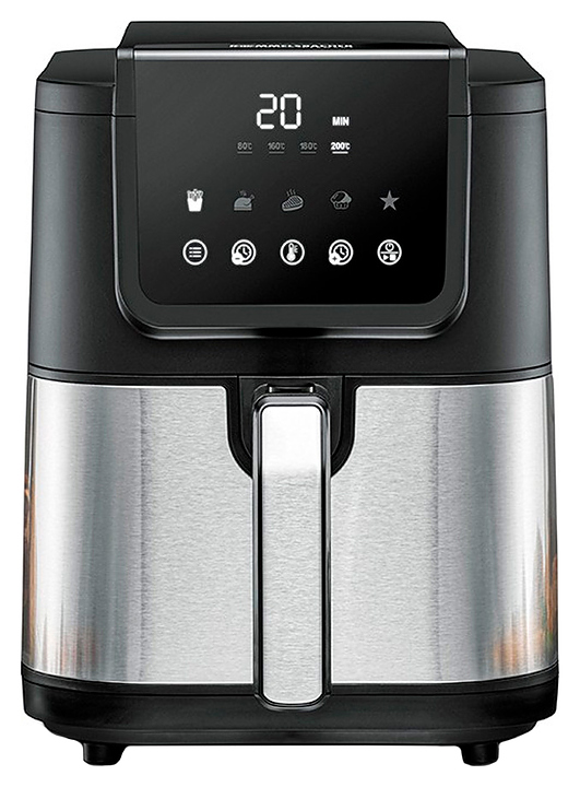 Аэрофритюрница Rommelsbacher FRH 1500 предназначена для приготовления различных продуктов горячим воздухом без масла в частных домах, квартирах, отелях и офисах. Модель оснащена сенсорной панелью управления со светодиодным дисплеем, смотровым окном, съемной корзиной для жарки с двухслойным антипригарным покрытием, решеткой с силиконовыми прокладками и удобной ручкой. Вставка выполнена из нержавеющей стали. Особенности: