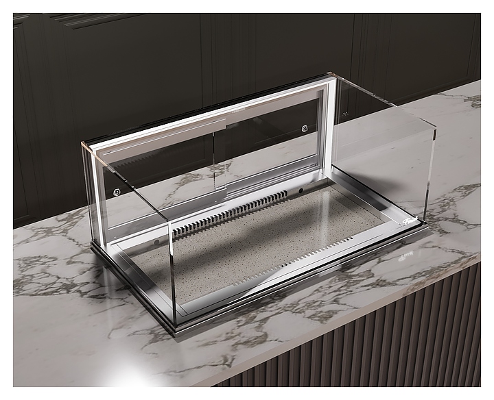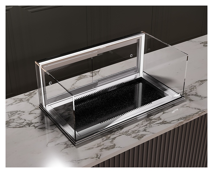 Встраиваемая кондитерская витрина Finist Glassier58 Stone Gst-11/6/3 предназначена для кратковременного хранения и предпродажной демонстрации десертов и кондитерских изделий на предприятиях общественного питания и торговли. Модель может монтироваться в столешницу из любого материала, что позволяет легко интегрировать в интерьер. Витрина оснащена светодиодной подсветкой и дверцей-купе. Каркас выполнен из зеркальной нержавеющей стали, купол - из стекла, зона выкладки - из искусственного камня, который отличается прочностью, долговечностью, гигиеничностью, легко очищается и не впитывает запахи. Особенности: